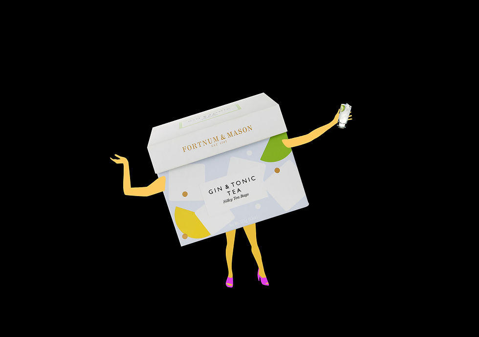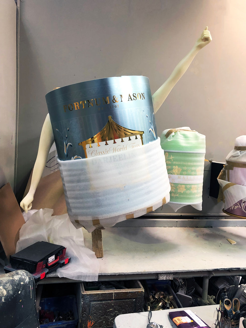 The next run of windows featured the following - The Royal Blend - A true Fortnum’s classic first created for King Edward VII in 1902, and also by the late Queen Elizabeth II. It was therefore fitting to incorporate the Imperial State Crown and iconic Launer handbag Her Majesty was never seen without. Then came Gin & Tonic Tea - This refreshing drink brings all of the joy of a tipple without the consequences and Fortnum’s strongest brew and a favourite among early-risers and gym bunnies alike, the Irish tea.
